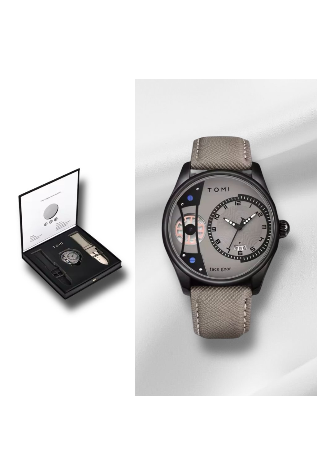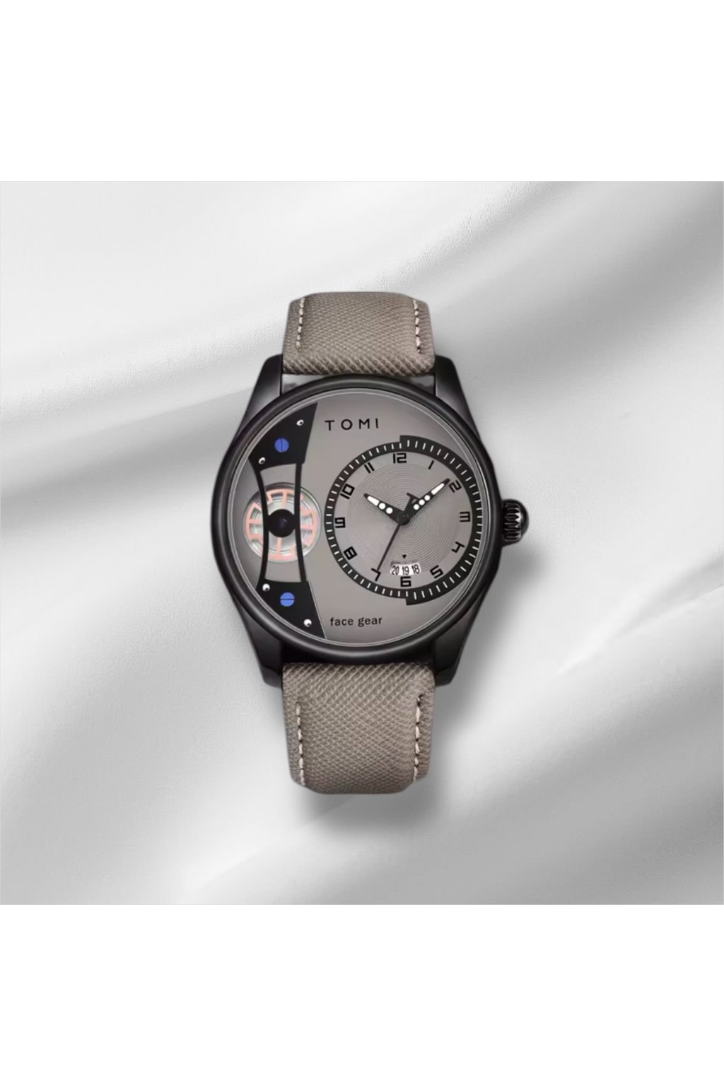 Elegantní kombinace moderního designu a precizního zpracování. Tento model zaujme unikátním ciferníkem s propracovanými detaily a kontrastními prvky. Matně černé pouzdro doplněné šedým textilním řemínkem vytváří nadčasový vzhled vhodný pro každou příležitost. Možnost gravírování na míru dodává hodinkám osobitost a jedinečný charakter.⚡