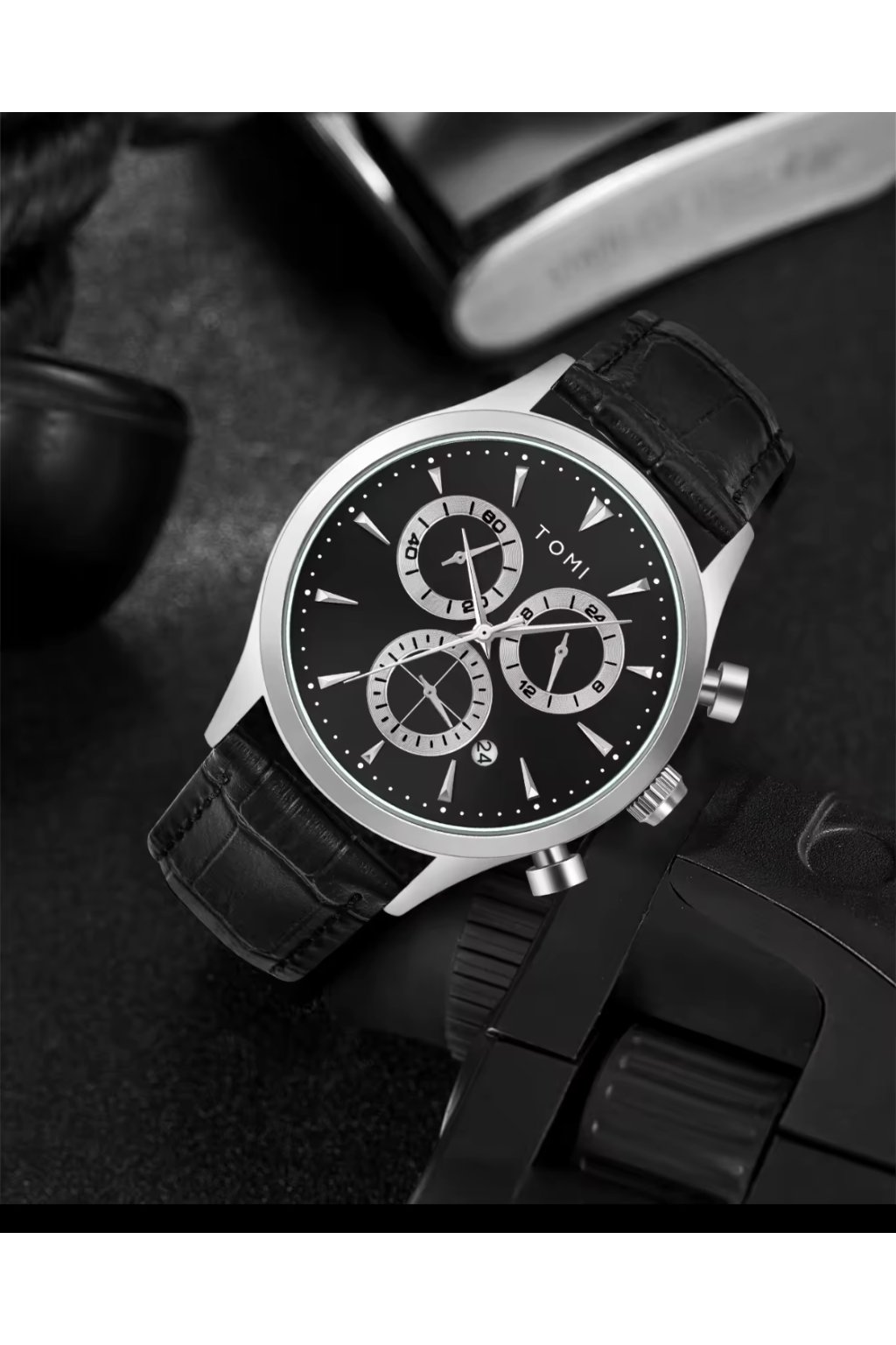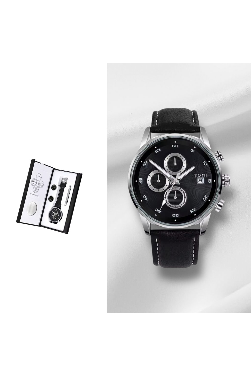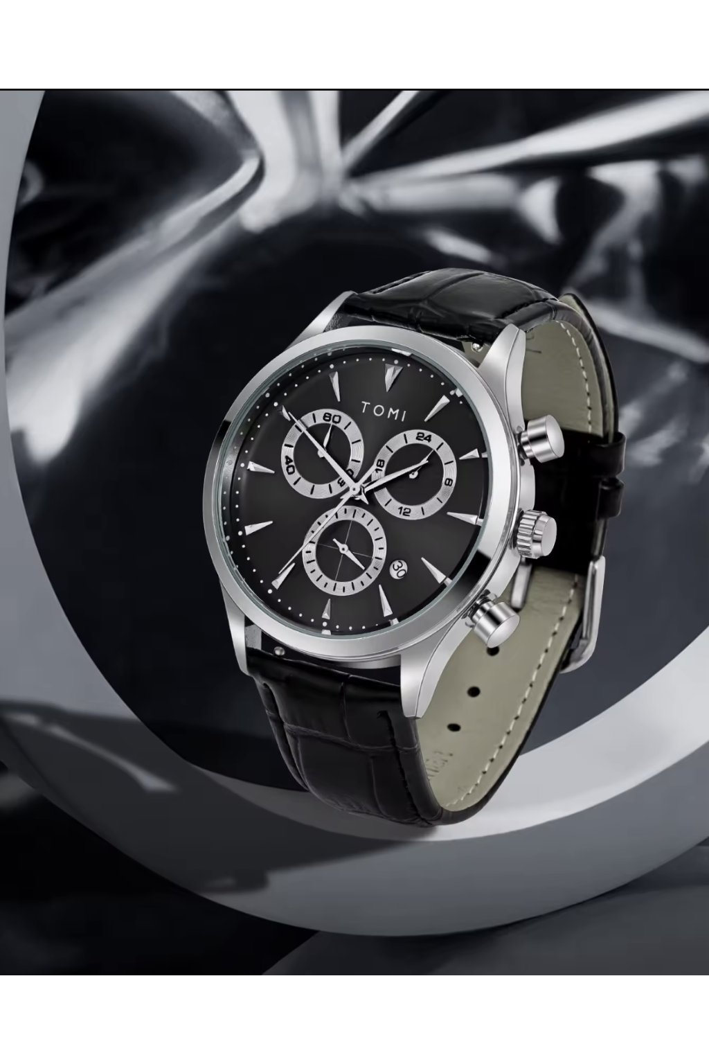 Dynamika, styl a přesnost v jednom. Tyto chronografové hodinky s černým ciferníkem a stříbrnými subciferníky spojují sportovní funkce s elegantním vzhledem. Pouzdro z leštěné oceli, kožený řemínek s kontrastním prošitím a přehledné ukazatele dělají z modelu Torque perfektní volbu pro všechny, kteří chtějí nosit čas s hrdostí. Díky možnosti gravírování na míru se stanou skutečně osobním doplňkem.⚡